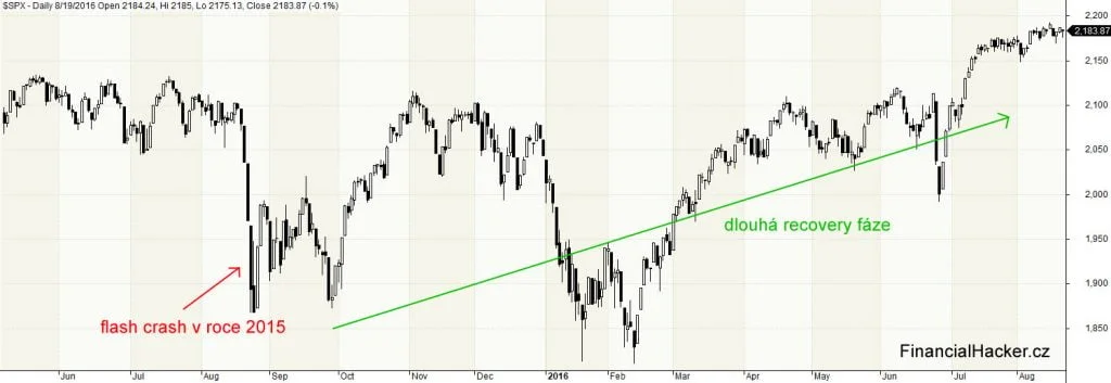 Nejdelší recovery měla korekce z roku 2015 (č. 2). Šlo o tzv. flash crash následovanou dalším výprodejem. Pokles nebyl nijak závratně hluboký (-15,21 %), ale o to déle trvalo její zotavení – více jak rok, než se index S&P 500 dostal na nová high.