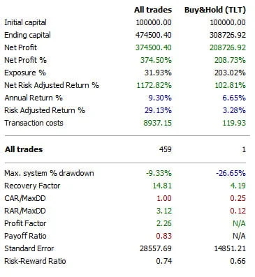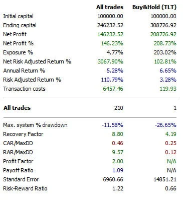 Oba systémy jsem vyvinul pro obchodování dlouhodobých vládních dluhopisů USA, jedná se o ETF fond s tickerem TLT (iShares 20+ Year Treasury Bond), který je snad nejvíce obchodovaným dluhopisovým ETFkem.