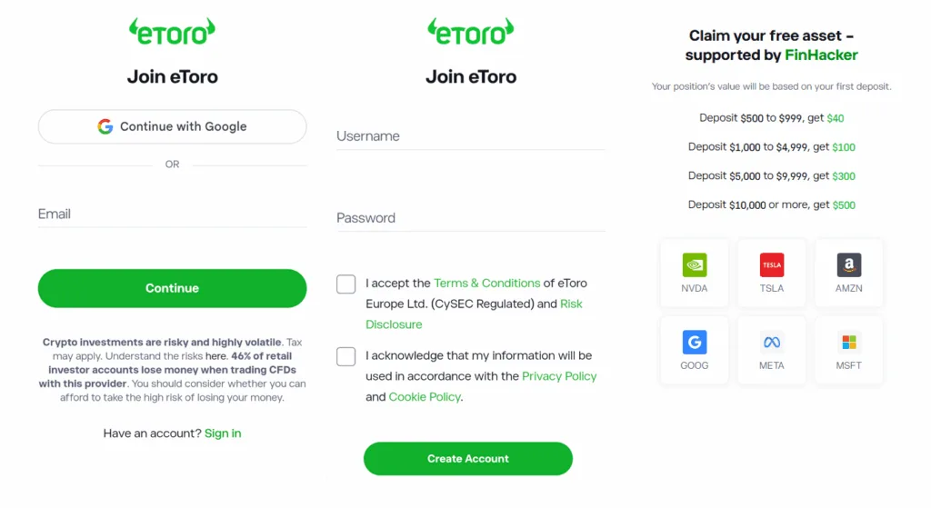 The value of the free stock you receive from eToro depends on the amount of your first deposit. In general, the higher your initial deposit, the higher the value of the bonus stock.