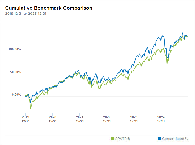 Všechny ty roční přehledy výše jsou sice fajn, ale pro mě osobně je nejzajímavější a nejdůležitější dlouhodobá výkonnost 👇