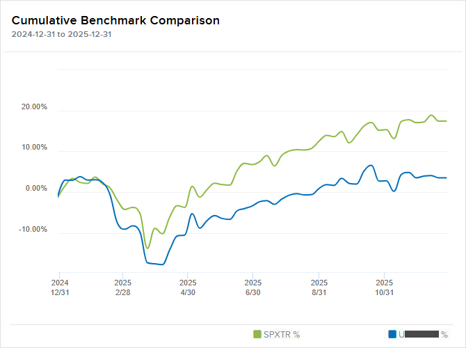 Za rok 2025 jsem zhodnotil své hlavní portfolio přepočítané do korun o +3,49 % vs -0,37 % u S&P 500 (SPXTR). Na to, že dolar v loňském roce oslabil o úctyhodných 15,48 %, to stále beru jako solidní výsledek 💪