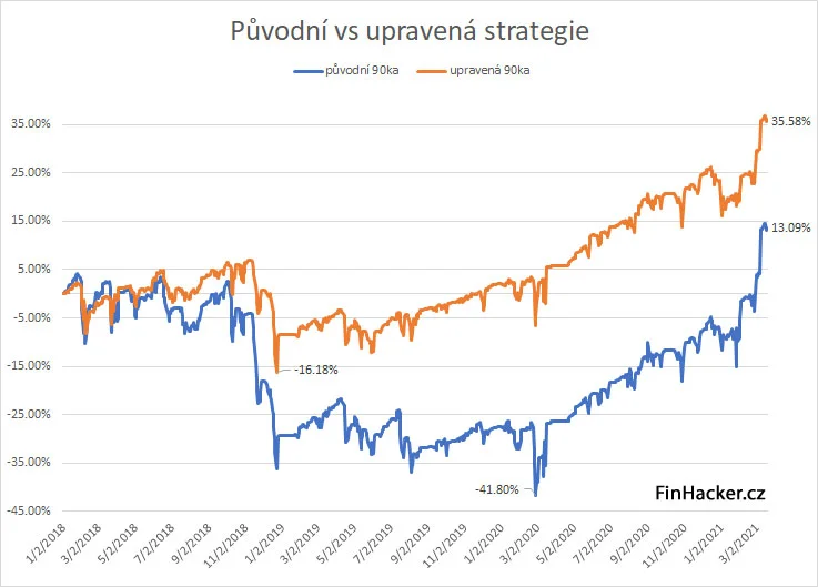 Níže ještě ukázka, jak vypadala výkonnost upravené a originální verze od začátku roku 2018 po současnost.